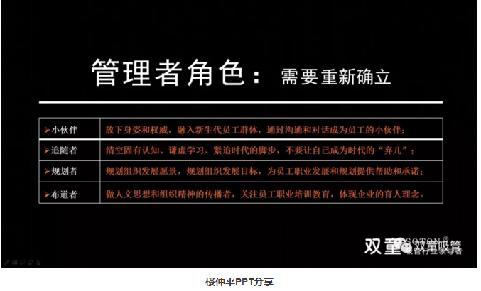 當(dāng)然在企業(yè)的年輕化的過(guò)程中,會(huì)有非常多的困難。第一個(gè)就是企業(yè)的管理者要改變心態(tài),要做員工的小伙伴,要走進(jìn)他們,了解他們;要做年輕人的追隨者,要追趕上年輕員工的腳步,不斷成長(zhǎng),讓自己的思想變成90后,00后。接下來(lái),企業(yè)管理者要變成規(guī)劃者,要根據(jù)最新的潮流規(guī)劃企業(yè)的未來(lái),3年,5年,如何讓企業(yè)駐立在潮頭。最最重要的是,企業(yè)家要成為這個(gè)企業(yè)的布道者,讓所有的員工都可以接受而且可以理解,并且共同努力完成企業(yè)的使命與價(jià)值。