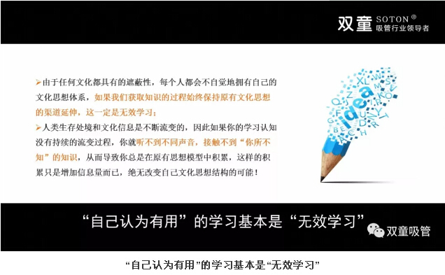 所以,由于任何文化都具有的遮蔽性,每個人都會不自覺地擁有自己的文化思想體系。作為創(chuàng)業(yè)者或管理者來講,我們也要不斷調(diào)整自己的思想狀態(tài)和文化結構。如果我們獲取知識的過程始終保持原有文化思想的渠道延伸,就會導致我們總是在原有思想模型中積累,這樣的積累只是增加信息量而已,絕無改變自己文化思想結構的可能!