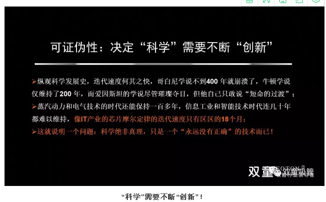 關于到底什么是“科學”?著名經(jīng)濟學家波普爾提出了“證偽主義科學論”對“科學”進行了界定:凡是能夠證明是錯了的學問才能叫“科學”,并用極厚的一本書作了系統(tǒng)證明,這跟我們平常的理解正好相反。這就說明一個問題:科學絕非真理,只是一個“永遠沒有正確”的技術而已!“科學”需要不斷“創(chuàng)新”!