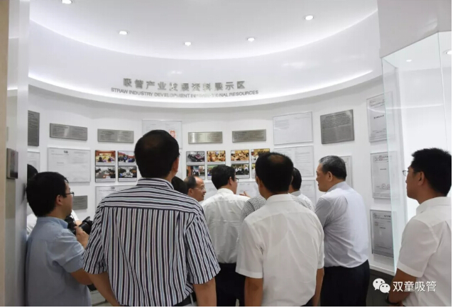 “雙童”樓仲平首先帶領(lǐng)田世宏局長一行來到中國吸管博物館。大家一起參觀了產(chǎn)品發(fā)展歷史展示區(qū)、吸管生產(chǎn)技術(shù)展示區(qū)、吸管產(chǎn)品形態(tài)展示區(qū)等各類吸管的展示區(qū)域,了解了吸管的發(fā)展與變遷。琳瑯滿目的創(chuàng)新吸管產(chǎn)品也讓田世宏局長稱贊不絕!