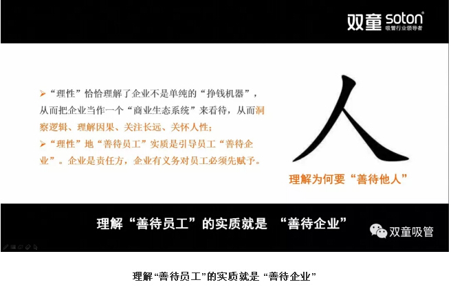 綜合以上案例,我們可以發(fā)現(xiàn)“理性管理”恰恰理解了企業(yè)不是單純的“掙錢機(jī)器”,從而把企業(yè)當(dāng)作一個“商業(yè)生態(tài)系統(tǒng)”來看待,從而洞察邏輯、理解因果、關(guān)注長遠(yuǎn)、關(guān)懷人性。我們對員工的態(tài)度,就是員工對企業(yè)的態(tài)度,員工體會到組織的關(guān)懷才能安心穩(wěn)定在企業(yè)長期就業(yè)。“理性”地“善待員工”實質(zhì)是引導(dǎo)員工“善待企業(yè)”!