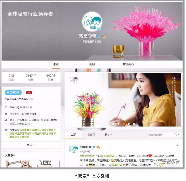 在許多人的印象中,像吸管這樣的小商品無足輕重,不值得去做品牌。“雙童”經(jīng)過24年的努力,在塑造品牌過程中不斷探索實踐,采用新媒體等創(chuàng)新思維進行品牌文化傳播,硬是把一個看似不可能的產(chǎn)品創(chuàng)造出大品牌,從而形成了“雙童”如今廣為人知名揚天下的品牌效應!