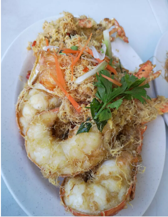 從軍艦島回到鎮(zhèn)上,我們就回民宿抓緊時間洗漱,去街上買了大龍蝦、皮皮蝦、海蟹,拿到也是很有名的天旺海鮮樓加工制作。買海鮮的過程參照昨天提到的,七八位賣海鮮的當(dāng)?shù)厝四弥鞣N各樣的海鮮圍著我們,簡直是來不及應(yīng)對。再加上要趕飛機,所以我們的海鮮餐沒有狠砍價,最后我們的海鮮大餐創(chuàng)了我們在馬來的最奢侈一餐——561元馬幣,相當(dāng)于4個人吃了900塊錢人民幣,心疼荷包三秒鐘。不過,天旺加工的味道也很棒了,我們四個人吃不完,還打包回亞庇了呢。