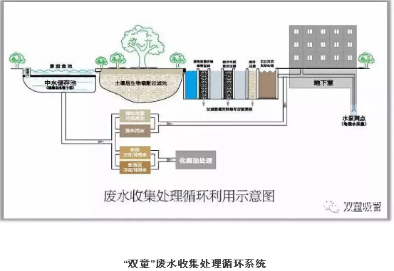 “雙童”景觀湖可不只是美化了環(huán)境,在碧綠的湖水下面還藏著中水儲存池呢!通過廢水收集處理循環(huán)利用系統,“雙童”將企業(yè)所有的工業(yè)廢水、生活污水在過濾后匯聚到“雙童一號樹”下進行生物吸附處理,再流入景觀池下面的中水池中。
