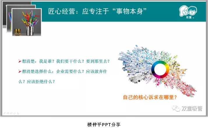 接下來(lái),樓仲平分享道:“雙童”堅(jiān)持了25年的制造業(yè),25年做一根吸管在大多數(shù)人眼中是沒(méi)有花頭的。但事實(shí)證明,只要你努力,不起眼的小商品也可以做到幾個(gè)億的產(chǎn)值,也可以繳納上千萬(wàn)的稅收。如果你從事了制造業(yè),千萬(wàn)不要輕易放棄。改革開放三十多年,經(jīng)歷了一波一波的S曲線,創(chuàng)業(yè)者要跳開眼前的表象,要去理解事物的本質(zhì),在積累和堅(jiān)持的過(guò)程當(dāng)中拉大尺度,要看得更加長(zhǎng)遠(yuǎn),才能不受外部環(huán)境變化而影響自身,把制造業(yè)做好!