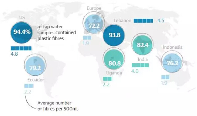 據(jù)外媒報道,美國非營利性機(jī)構(gòu)Orb Media科學(xué)家對數(shù)十個國家的自來水樣本調(diào)查研究后發(fā)現(xiàn),全球83%的自來水中含有塑料微粒,這意味著數(shù)十億人的飲用水受到了塑料污染。