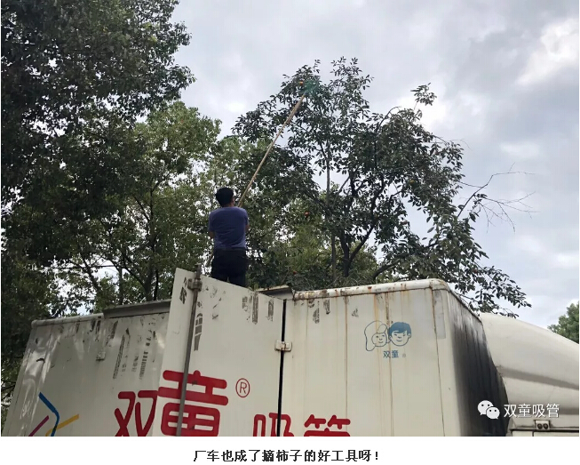 我們的采摘員“掛”在柿子樹(shù)上那叫一樂(lè)呵,