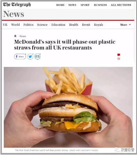 今年3月,麥當(dāng)勞宣布不再在英國(guó)門(mén)店中使用塑料吸管。