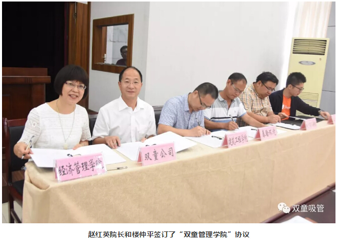 9月4日上午,“雙童”樓仲平受邀前往義烏工商職業(yè)技術(shù)學(xué)院文美廳,參加“義烏工商職業(yè)技術(shù)學(xué)院——雙童管理學(xué)院”簽約儀式。義烏工商學(xué)院經(jīng)濟(jì)管理學(xué)院院長趙紅英與“雙童”樓仲平簽署了冠名學(xué)院合作協(xié)議,校領(lǐng)導(dǎo)為冠名學(xué)院授牌,“義烏工商職業(yè)技術(shù)學(xué)院——雙童管理學(xué)院”正式成立!
