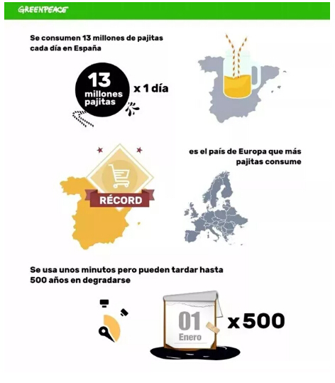 在西班牙,每人每年消耗110根吸管,平均每三天一根。目前,綠色和平組織對(duì)此發(fā)出強(qiáng)烈批評(píng),要求人們停止使用塑料吸管等一次性塑料產(chǎn)品。