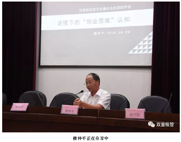 啟動儀式后,“雙童”樓仲平作為創(chuàng)業(yè)導(dǎo)師受邀上臺,和三四十位創(chuàng)二代和領(lǐng)軍型企業(yè)主們分享了“開班第一課”——《逆境下的創(chuàng)業(yè)思維認知》!