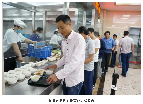 在“雙童”,500號(hào)員工就是按照以上步驟用餐的。上一批員工剛吃完,下一批員工可以直接就餐,后勤阿姨也不需要反復(fù)打掃餐廳衛(wèi)生,所有員工就餐完畢后,整個(gè)餐廳的衛(wèi)生依舊保持得很好!是不是挺牛的?