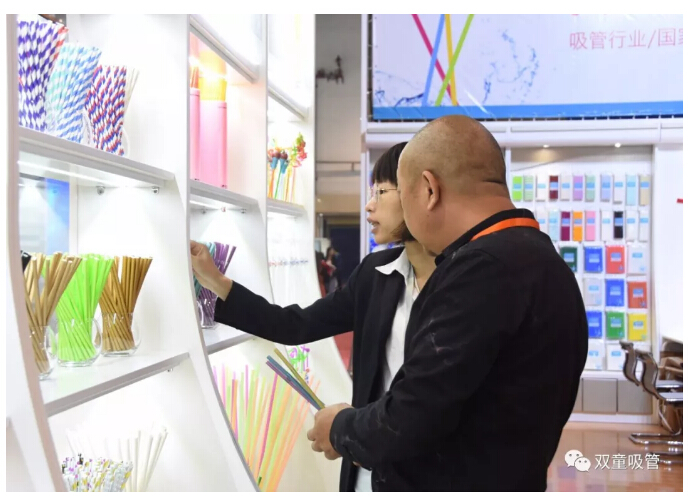 與以往不同的是,今年的“雙童”展區(qū)展示著眾多可降解吸管,他們成為了展會(huì)“明星”,吸引了大批新老客戶駐足采購(gòu)。