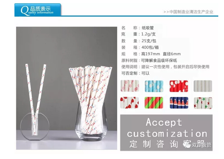 相對(duì)于塑料吸管,紙質(zhì)吸管以食品接觸類原紙為主要材料,并能用大豆基油墨印刷各類花色,在顏色鮮艷飽滿的同時(shí),確保安全無(wú)毒無(wú)異味,在回收廢棄后三到四個(gè)月內(nèi)可完全降解,符合歐美國(guó)家對(duì)食品安全包裝的衛(wèi)生要求,可用于生日派對(duì)、餐飲連鎖、家庭消費(fèi)、兒童DIY用具等各類場(chǎng)所!