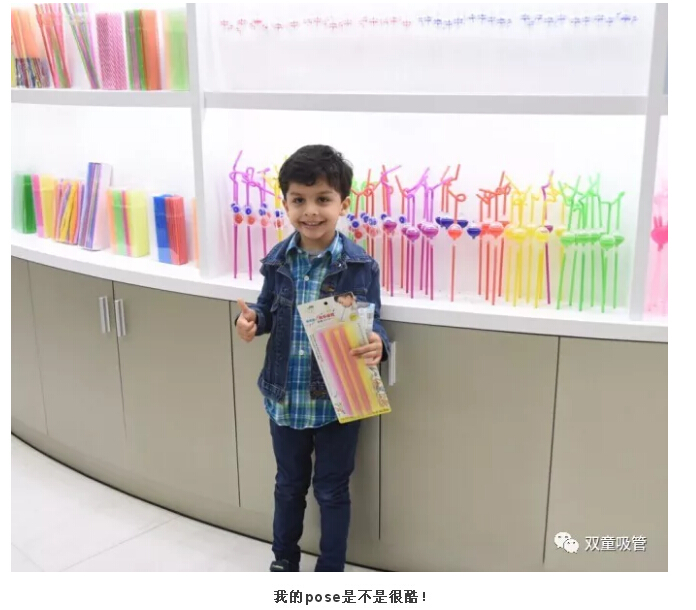 瞧,隨行而來的外國小朋友看到這么多各種各樣的吸管也是開心不已,開心地?cái)[起了各種帥氣的POSE呢!