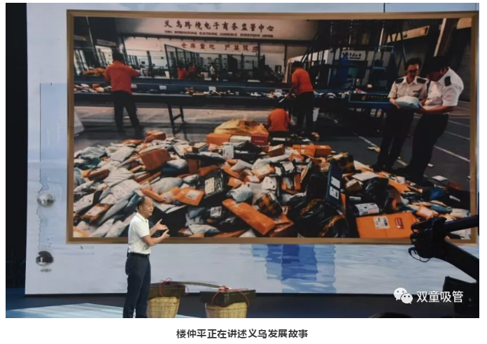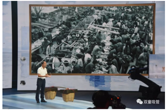 在節(jié)目現(xiàn)場(chǎng),“雙童”樓仲平也帶來(lái)了許多精彩的照片。其中,開(kāi)場(chǎng)照片便是義烏這座城市的對(duì)比照片。通過(guò)挑貨郎與義烏小商品城開(kāi)展全球電商的照片對(duì)比,樓仲平講述了義烏如何從貧瘠落后的小縣城發(fā)展為全球最大的小商品集散中心的故事……