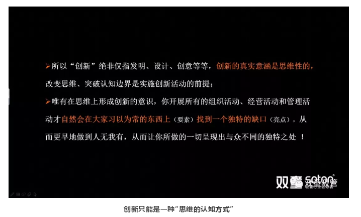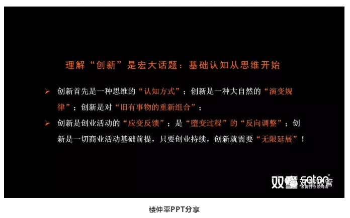 原來(lái),正是因?yàn)椴粩嗟膶W(xué)習(xí)提升,樓仲平自身的思維也發(fā)生了轉(zhuǎn)變。他的課程也從最初的創(chuàng)業(yè)經(jīng)歷分享轉(zhuǎn)變?yōu)橥高^(guò)經(jīng)驗(yàn)層面的底層邏輯形成思維理念,從而引導(dǎo)創(chuàng)業(yè)者思維認(rèn)知轉(zhuǎn)變!
