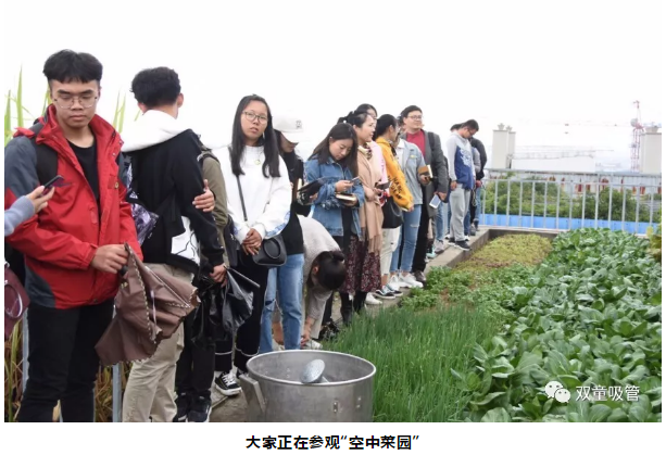 最后,大家來到“雙童”人氣最高的——“空中菜園”,到了“空中菜園”,大家仿佛從一個”吸管世界“進(jìn)入了另一個“奇妙世界”,空中菜園里的”蔬菜綠“讓大家眼前一亮,也是不由得發(fā)出了陣陣驚呼,對“雙童”屋頂菜園種著的瓜果蔬菜十分好奇,開啟了“識菜”模式!