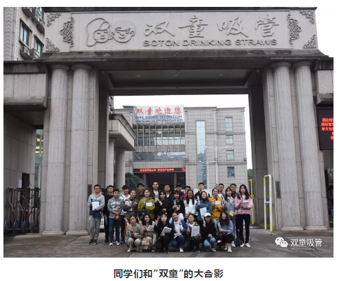 在一個小時左右的參觀結(jié)束后,同學(xué)們也強(qiáng)烈要求在“雙童”正大門再一拍一次合影,為此次的游學(xué)之旅畫上了一個圓滿的句號!吸管妞也歡迎大家再來做客哦!