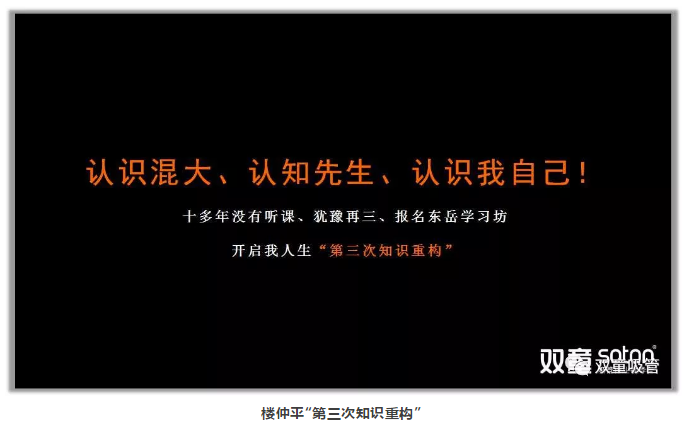 在東岳學(xué)習(xí)坊結(jié)束之際,“雙童”樓仲平不僅十分堅定的報名參加混沌大學(xué)創(chuàng)新院繼續(xù)學(xué)習(xí),而且還受邀作為學(xué)霸坊友于2018年12月7日進(jìn)行《“一根吸管”的思維蝶變》的畢業(yè)季分享。