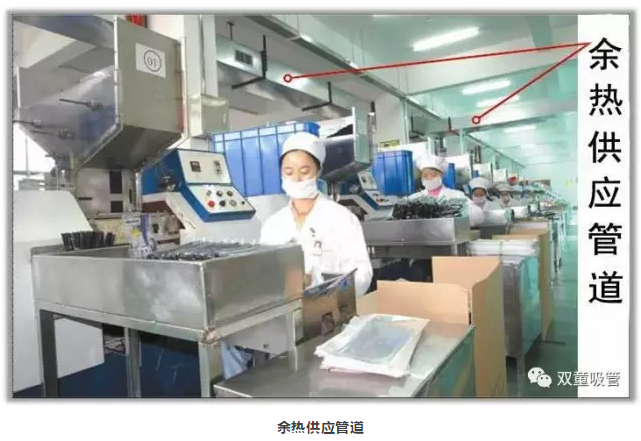 考慮到“雙童”生產(chǎn)設(shè)備產(chǎn)生大量余熱的狀況,我們在所有的設(shè)備上安裝了余熱采集裝置,把所有生產(chǎn)設(shè)備的余熱和廢氣進行采集并回收,采集的余熱經(jīng)過凈化處理后再通過管道供應(yīng)給所有車間進行二次能源的利用(原來需要的熱空調(diào)現(xiàn)在不用了,節(jié)能了大量的電費)!