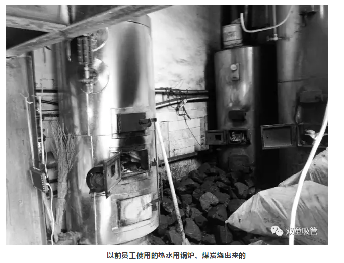 以前,“雙童”員工使用的熱水是用鍋爐煤炭燒出來的,不僅消耗了大量的媒炭,還形成了污染和排放。所以每年投入其中的設(shè)備維修、人工費用和土地資源對企業(yè)來講就是很大的一筆成本。