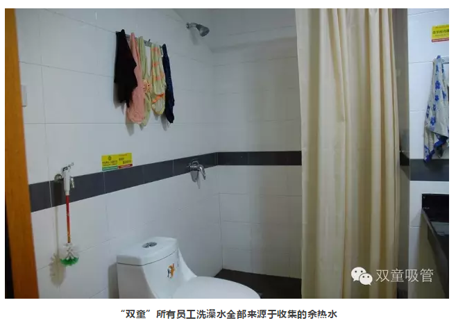 2004年,“雙童”實施了余熱水采集利用之后,解決了員工洗澡等生活所用熱水的問題,徹底消滅了原來鍋爐燒煤供水的污染。