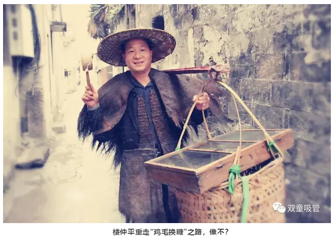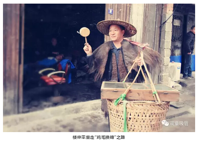 在我很小的時(shí)候,我爸爸就已經(jīng)出去“雞毛換糖”了,后來,兩個(gè)哥哥長大了也陸續(xù)跟著我的爸爸去“雞毛換糖”。