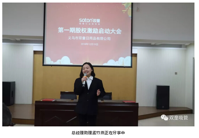 12月19日,雙童吸管第一期股權(quán)激勵(lì)啟動(dòng)大會(huì)隆重舉行,“雙童”12位新晉股東脫穎而出!他們大多都是從基層做起,完成了從打工仔到新晉股東的勵(lì)志蛻變!