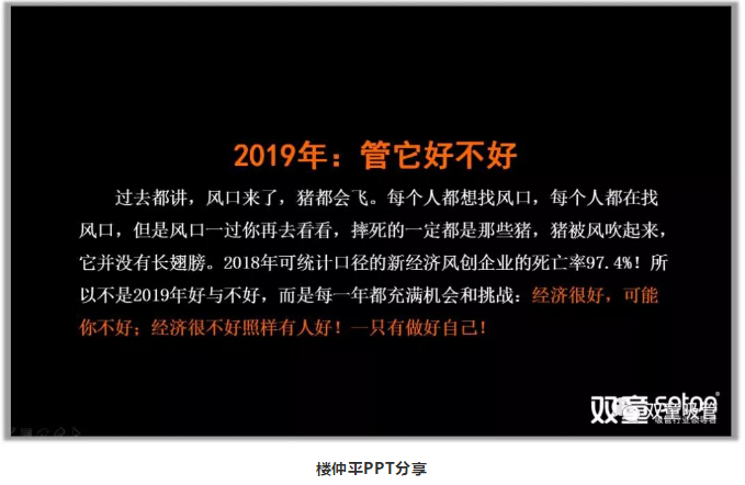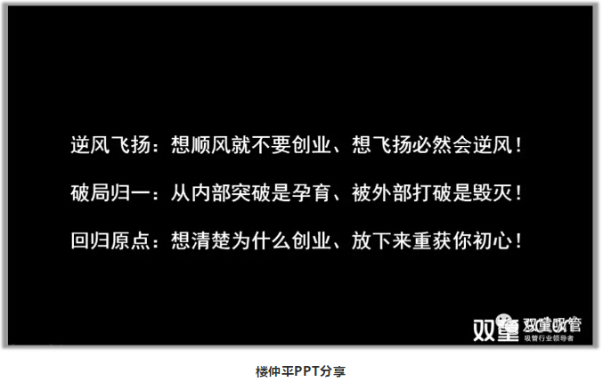 在年會(huì)中有一項(xiàng)議程,就是由“雙童”樓仲平為大家?guī)怼毒拮儠r(shí)代下企業(yè)生存的“慎”與“流”》課程分享!
