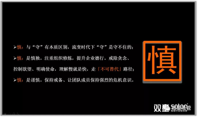 流變時(shí)代下,“守”是守不住的?!吧鳌保瑢?duì)企業(yè)來說是要認(rèn)識(shí)到這個(gè)時(shí)代給我們帶來的巨變沖擊,并知道自己的不足和短板。所以,“慎”是保持謹(jǐn)慎、戒備和危機(jī)。