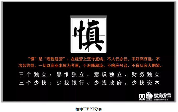 “慎”也是科學(xué)管理的本真,我們要有自己獨(dú)立的意識(shí),要有自己獨(dú)立的思維,在經(jīng)營上要有自己的獨(dú)立判斷,堅(jiān)守底線,不人云亦云,一切以商業(yè)本質(zhì)為考量,不追隨潮流、不響應(yīng)號(hào)召、不盲從旁人期望。基于以上,樓仲平也總結(jié)出“三個(gè)獨(dú)立”和“三個(gè)少找”: