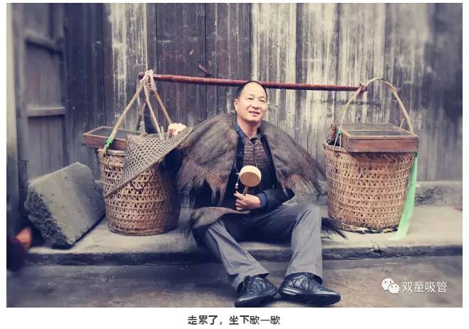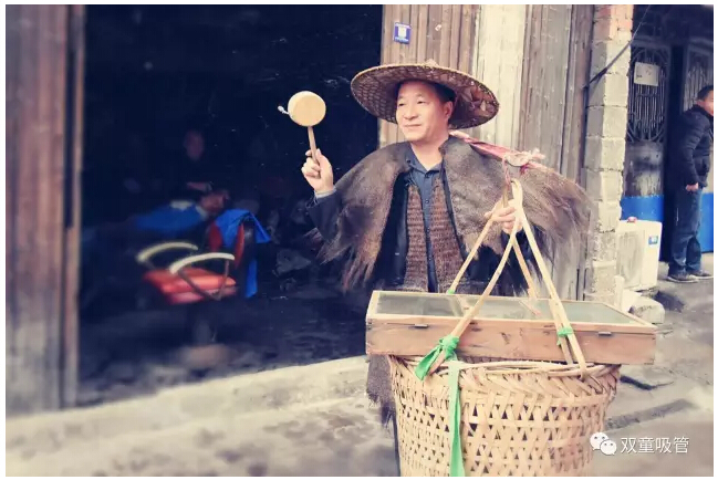 這是“雞毛換糖”人挑貨郎擔(dān)的場(chǎng)景……