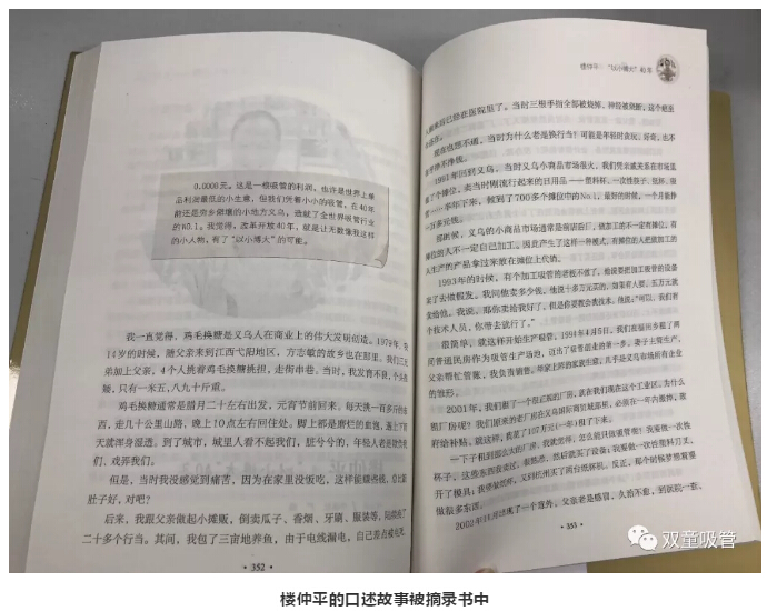 其中,樓仲平作為義烏企業(yè)界的代表,自身的創(chuàng)業(yè)經(jīng)歷伴隨著改革開放40年的發(fā)展,在書中分享了小人物“以小博大”的故事,其內(nèi)容被摘錄了整整十頁!
