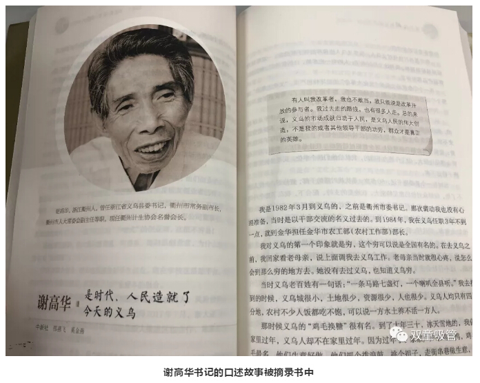 此書記錄了浙江大地最具代表性的40位浙江改革開放見證者,以口述歷史的方式記錄當事人所見、所聞、所思與所為!其中,“雙童”樓仲平與原義烏縣縣委書記謝高華是代表義烏改革開放40年發(fā)展的標志性人物!