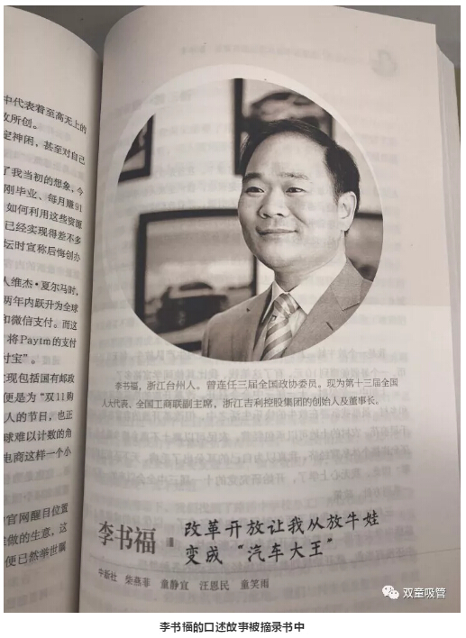 浙江吉利控股集團創(chuàng)始人李書福,口述故事《改革開放讓我從放牛娃變成“汽車大王”》被摘錄《浙江改革開放40年口述歷史》一書中。