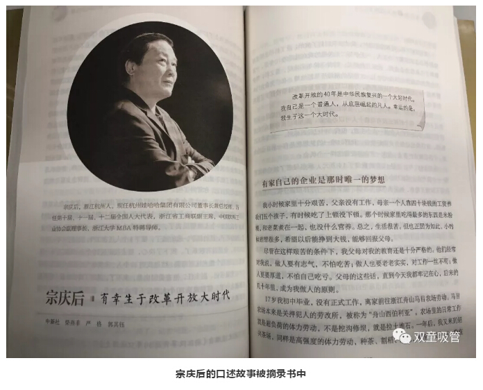杭州娃哈哈集團有限公司董事長宗慶后,口述故事《有幸生于改革開放大時代》被摘錄《浙江改革開放40年口述歷史》一書中……