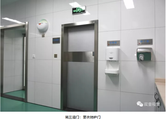 3.經過了兩道防護門后,員工們更衣后通過更衣防護門進入洗手消毒區(qū)域。