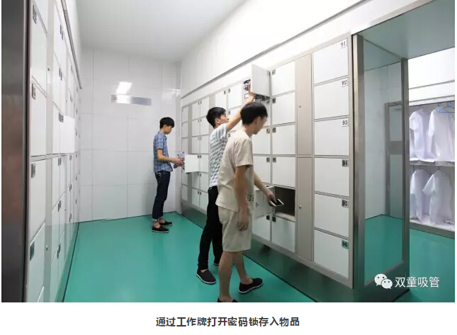 2、員工來到第一更衣區(qū),將自己的私人衣物儲存在柜子中。