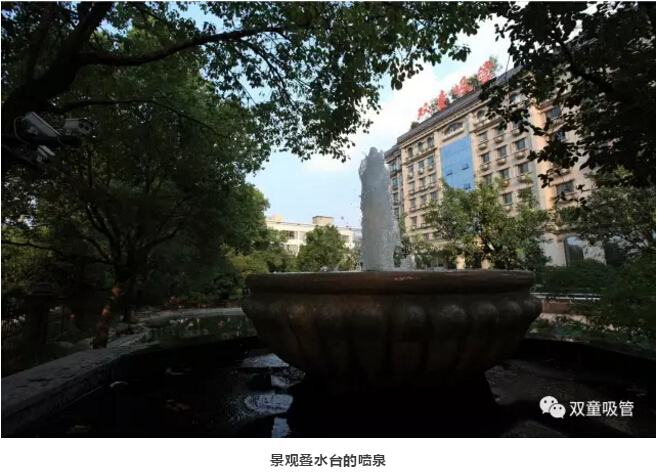 經(jīng)過九曲橋,來到湖邊的景觀疊水臺(tái),一道噴泉沖天而起,散開漫天花雨,沖入水池里的水不停地翻滾著,倒影迷幻,美麗極了!
