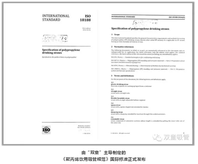 作為全球吸管行業(yè)領(lǐng)導(dǎo)者,這些年義烏市雙童日用品有限公司先后承擔(dān)聚乳酸冷飲吸管中國輕工行業(yè)標(biāo)準(zhǔn)、聚丙烯飲用吸管國家標(biāo)準(zhǔn)和聚丙烯飲用吸管規(guī)范ISO國際標(biāo)準(zhǔn)的起草編制工作。全球吸管行業(yè)國際標(biāo)準(zhǔn)的相關(guān)組織要求、生產(chǎn)過程、規(guī)則驗(yàn)收、依據(jù)評(píng)判等絕大部分標(biāo)準(zhǔn)條文均來自義烏市雙童日用品有限公司。