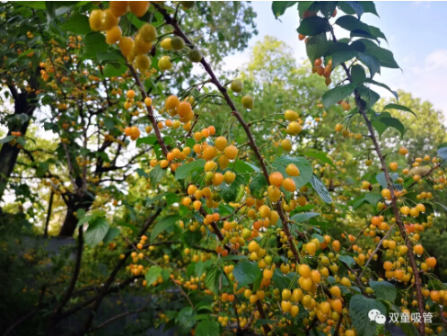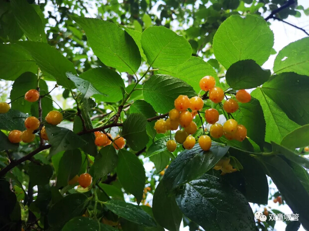 看!“雙童”的這幾棵櫻桃樹上,掛滿了紅色的果實(shí),點(diǎn)綴在繁密的綠葉間,令人垂涎欲滴!