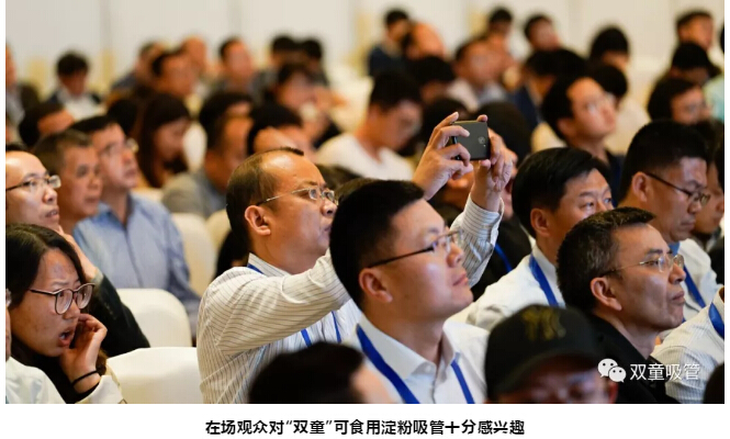 隨后,樓仲平也和大家詳細(xì)介紹了“雙童”可食用淀粉吸管的特性: