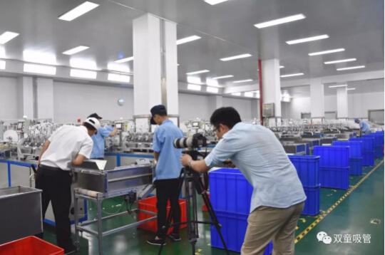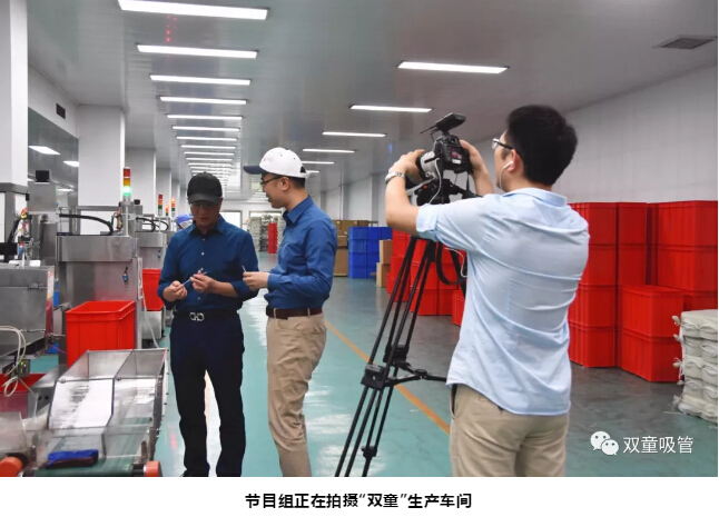 上周五,CGTN的三位記者老師從上海千里迢迢趕赴“雙童”,對(duì)全球吸管行業(yè)的未來(lái)趨勢(shì)及“雙童”新產(chǎn)品——可食用淀粉吸管做了專題報(bào)道??旄苕ひ黄鹂纯窗?!