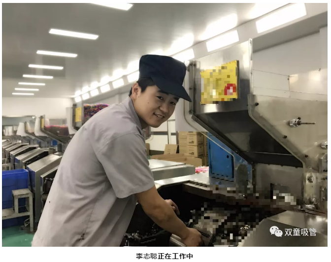 李志聰,來自安徽蚌埠懷遠(yuǎn)的一位年輕小伙子。2008年,年滿18歲的李志聰經(jīng)老鄉(xiāng)介紹來到“雙童”,在二車間從事理管的工作。在做了一年多的理管工作之后,李志聰又接觸了加管崗位,對“吸管”有了更深的了解。
