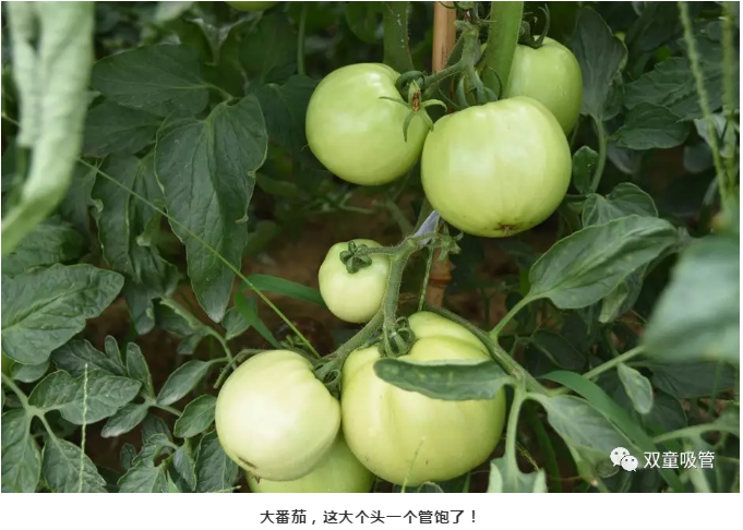 除了黃瓜之外,菜園中的番茄也是一道靚麗的風景哦!瞧,一根藤上結出好幾個番茄,大的,小的......摘了一顆放在嘴里,香甜鮮美,別有一番味道呢!