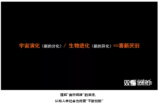 樓仲平繼續(xù)分享道:要真正認(rèn)知“創(chuàng)新”,首先要多去學(xué)習(xí)那些看似“無用”的知識,運用天文學(xué)、生物學(xué)、物理學(xué)的宏觀角度,理解在“自然規(guī)律”的演繹和進(jìn)化,再通過逐級推理的方式去認(rèn)知人類社會為什么要“不斷創(chuàng)新”。