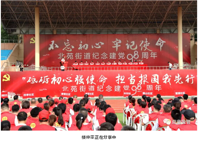 這不,6月29日上午,北苑街道為紀(jì)念中國(guó)共產(chǎn)黨成立98周年,開(kāi)展了建黨98周年慶“七一”專(zhuān)題千人大黨課。“雙童”樓仲平也受邀參加了此次活動(dòng),并受聘擔(dān)任了垃圾分類(lèi)宣傳大使!