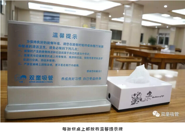 4.“雙童”大部分濕垃圾(餐廚垃圾)在餐廳的源頭給予分類(lèi),通過(guò)教育培訓(xùn)并在每張餐桌上都擺放著垃圾分類(lèi)的標(biāo)語(yǔ)提示牌,提醒員工們就餐后及時(shí)按食物垃圾、衛(wèi)生紙、包裝物三種類(lèi)別分類(lèi)投放于洗碗出三個(gè)大桶中,其中的包裝物和紙張垃圾作為資源類(lèi)垃圾回收、食物垃圾供應(yīng)給養(yǎng)殖戶(hù)作飼料回收,從而把企業(yè)所有的濕垃圾全部消滅;