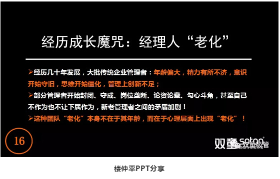 在公司創(chuàng)辦初期聘用的一批管理層,在2010年前后,大部分管理人員逐漸出現(xiàn):依托于慣性思維,憑經(jīng)驗用老方法解決新問題,不愿意學習等問題,團隊的成長也因此遇到了瓶頸。